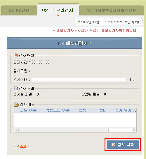 [ º¸¾È ÆÐÄ¡ ] °¡ ¿Ï·áµÇ¸é, µÎ¹øÂ° ´Ü°èÀÎ [ ¸Þ¸ð¸® °Ë»ç ] °¡ ½ÇÇàµË´Ï´Ù.